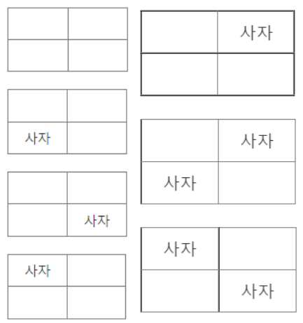 N = 2일 때 아무 사자 없는 두 칸을 붙일 때 즉 7개
