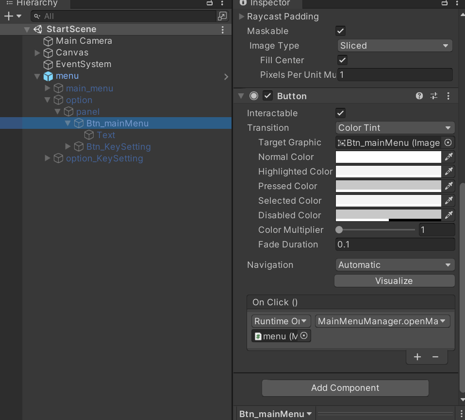 그리고 오른쪽에 dropDown에서 c#Script/함수를 적절히 선택해서 연결해줄 수 있다.