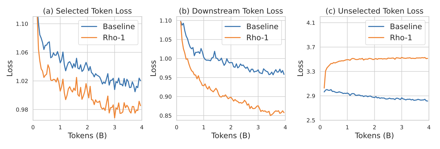 3. 참조모델에서 높은 초과 손실을 가지는 토큰들만을 사용해 훈련시킨다.